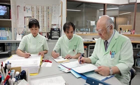 スタッフは10代~60代と幅広い年齢層が働いており、経験も様々です。そのため、患者さんのケアにスタッフの幅広い意見や感性を活かし、活気ある職場作りに取り組んでいます。